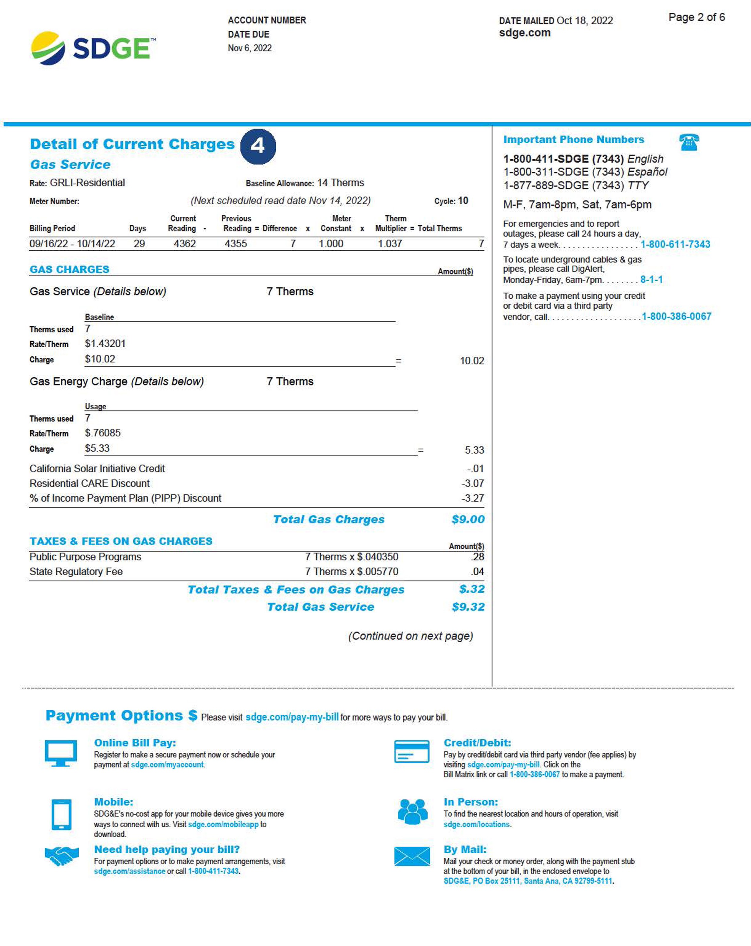 - Total Charges this Month — total amount due for gas and electric service, including taxes & fees, in current billing period
